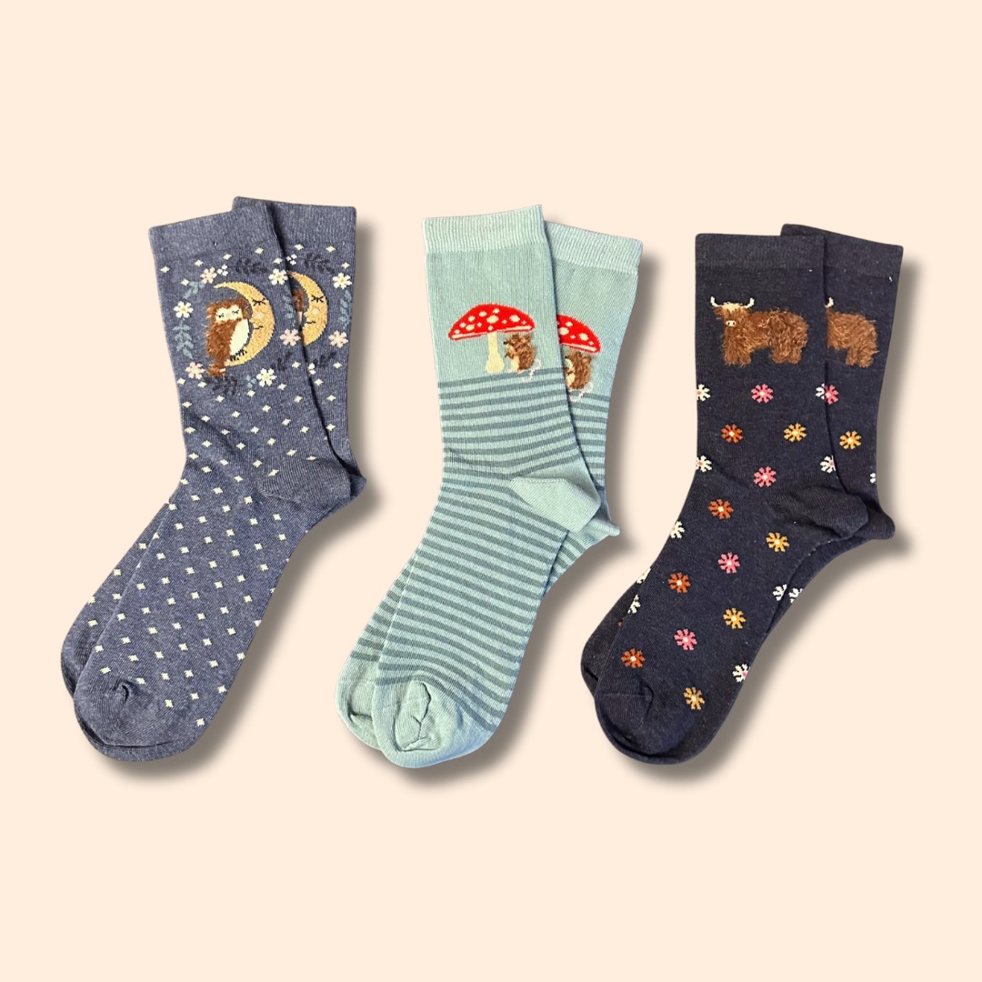 Eule, Maus, Highlander Motiv Socken
